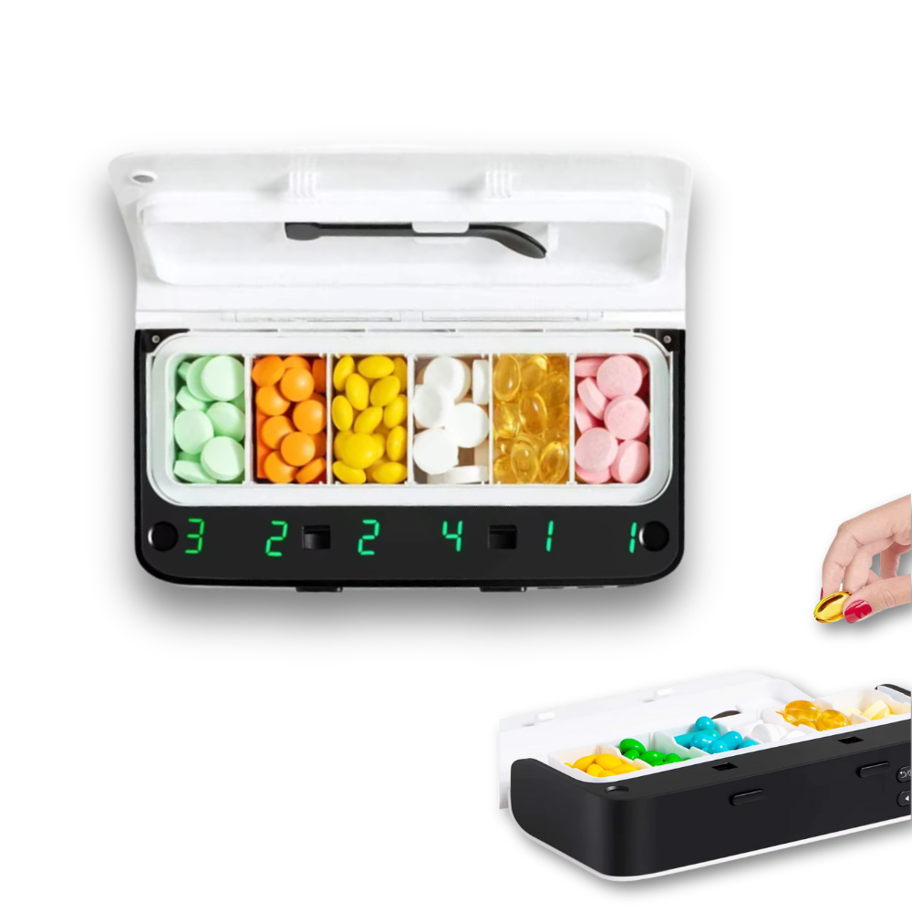 - 1× Electronic Pill Dispenser (LED display, alarm/vibration/light)